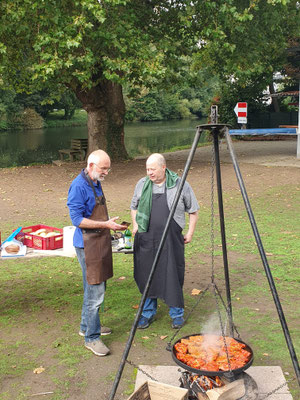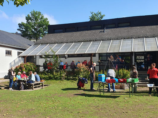 Das erste Stück führte über den Saazer Hof vorbei an der Gagernschule zum Tempelchen Schellhofkopf. Hier verköstigte der Kur-Und Verkehrsverein Kubach die Wanderlustigen mit kalten Getränken. Danach ging es weiter über den Leinpfad zum Bootshaus nach Weilburg. Dort erwarteten die Teilnehmer bei strahlendem Sonnenschein diverse Spezialitäten vom Grill mit hausgemachten Salaten sowie Kaffee und selbstgebackenen Kuchen.